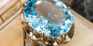 Prsten pozlata 24 karata, veliki kamen plavi moisanit, sa strane mali beli moisaniti, imam vise veličina, jako elegantan i moderan prsten, tel za naručivanje 0638861547